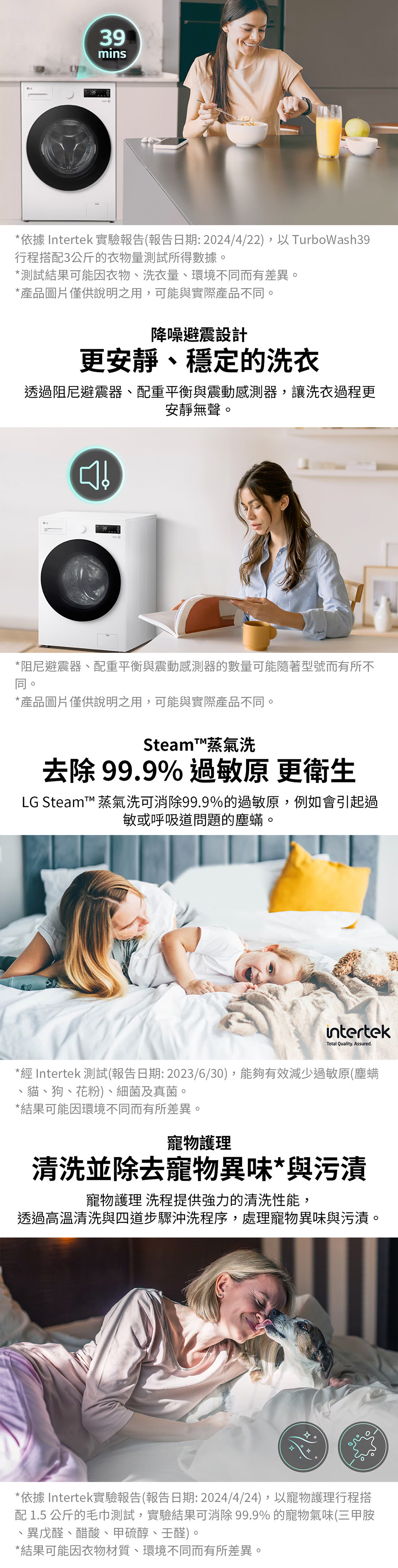 ●Steam™蒸氣洗:60°C天然蒸氣去除99.9%過敏原
