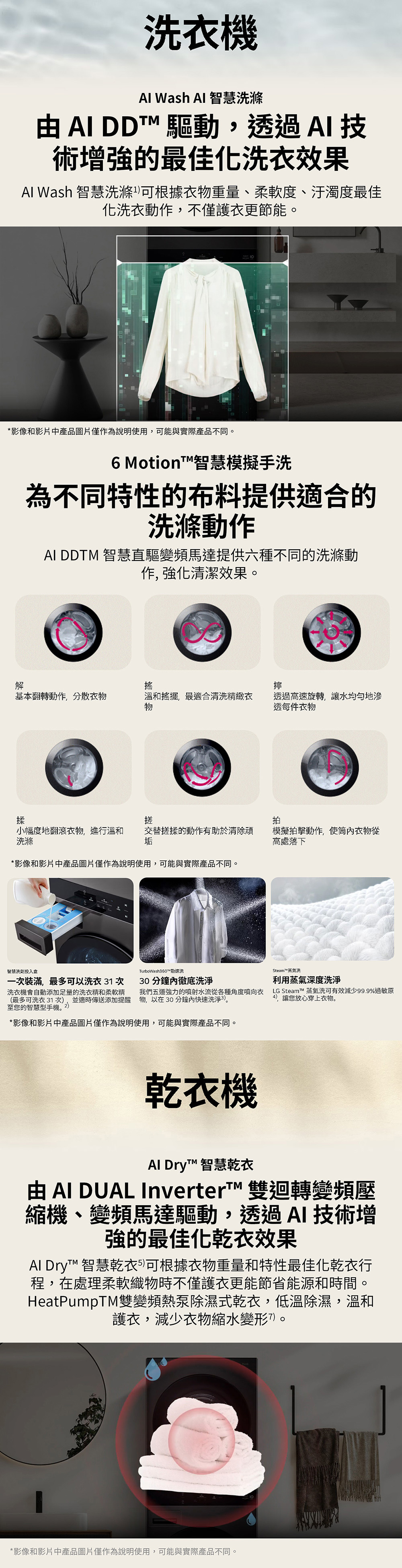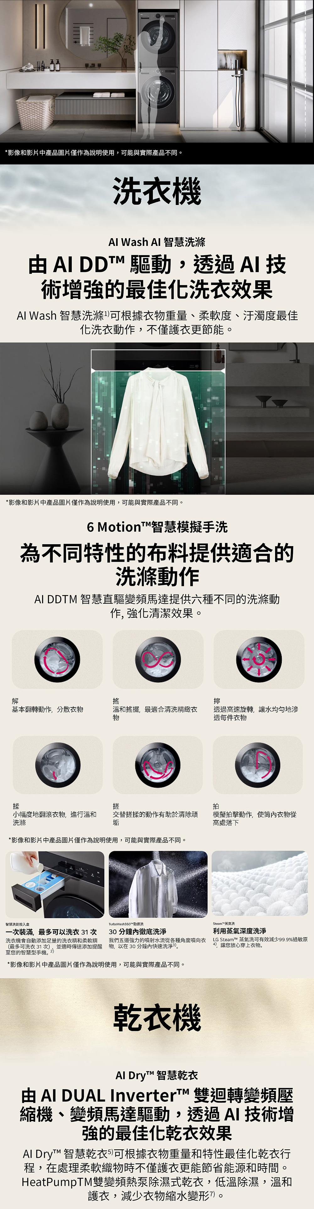 ●洗乾全 AI,AI DD 智慧洗滌+AI Dry 智慧乾衣