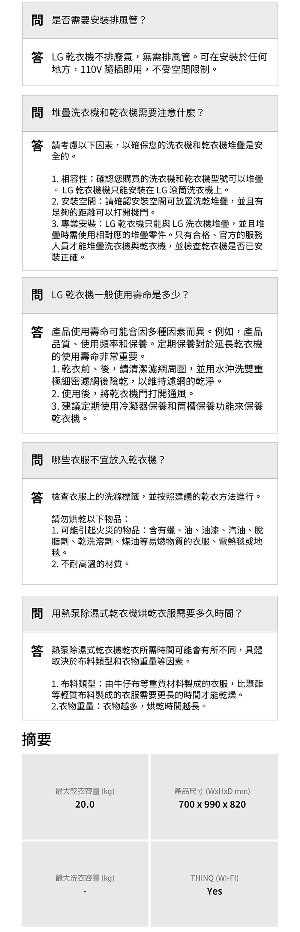 LG AI免曬衣乾衣機 冰瓷白 20公斤|WR-20DW