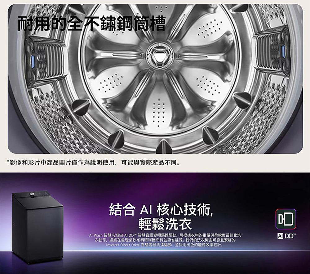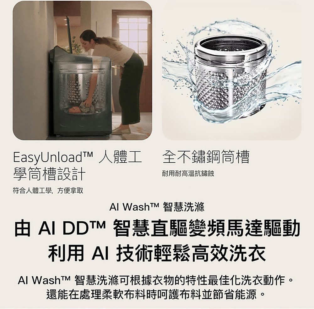 ●AI Wash™ 智慧洗滌,提供最適洗衣動作