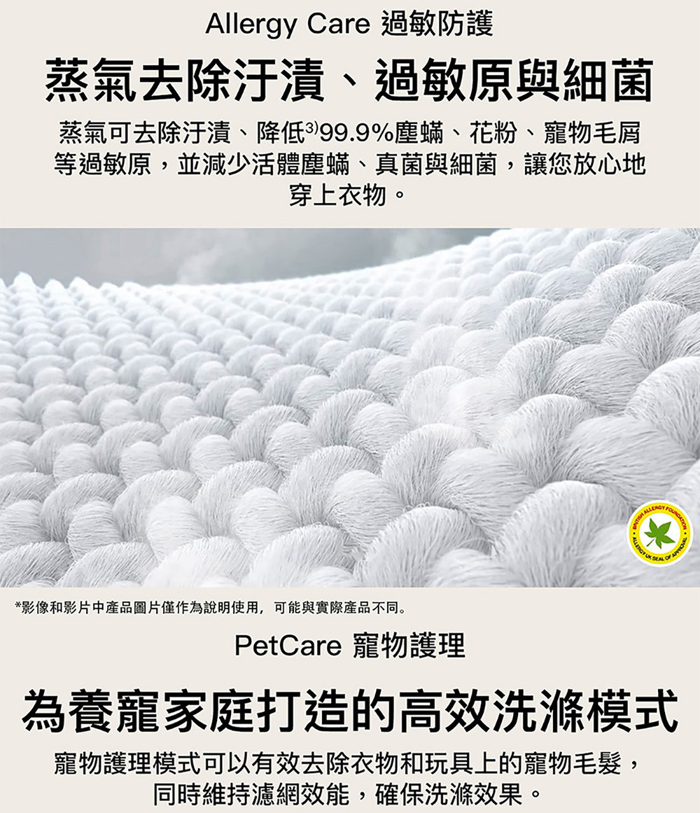 ●Steam™ 蒸氣洗,過敏防護行程,有效去除汙漬、過敏原